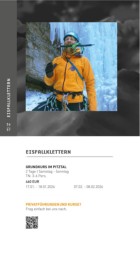 EISFALLKLETTERN 36 37 EISFALLKLETTERN GRUNDKURS IM PITZTAL 2 Tage | Samstag - Sonntag TN: 3-6 Pers. 460 EUR 17.01. - 18.01.2026 07.02. - 08.02.2026 PRIVATFÜHRUNGEN UND KURSE? Frag einfach bei uns nach.
